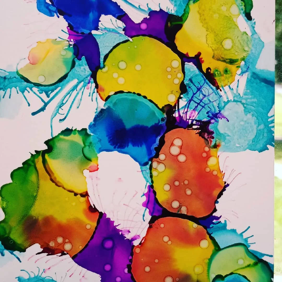 “I primarily work with alcohol inks, a medium that captures my desire for spontaneity and freedom”